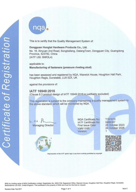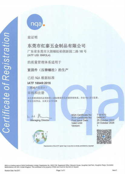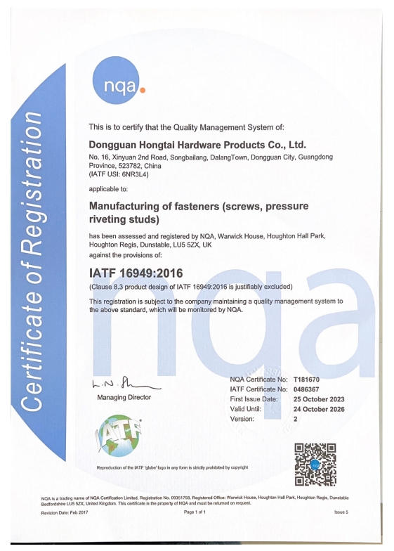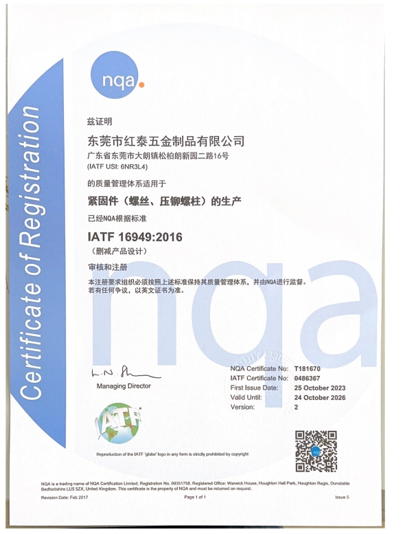 東莞市紅泰五金制品有限公司,公司占地六千多平方米,擁有五十多組螺絲機(jī)及六十臺自動車床設(shè)備。是一家專業(yè)設(shè)計(jì)、生產(chǎn)ISO、DIN、GB、JIS、ANSI、BS及客戶指定特殊要求的高精密五金緊固件的制造企業(yè)。